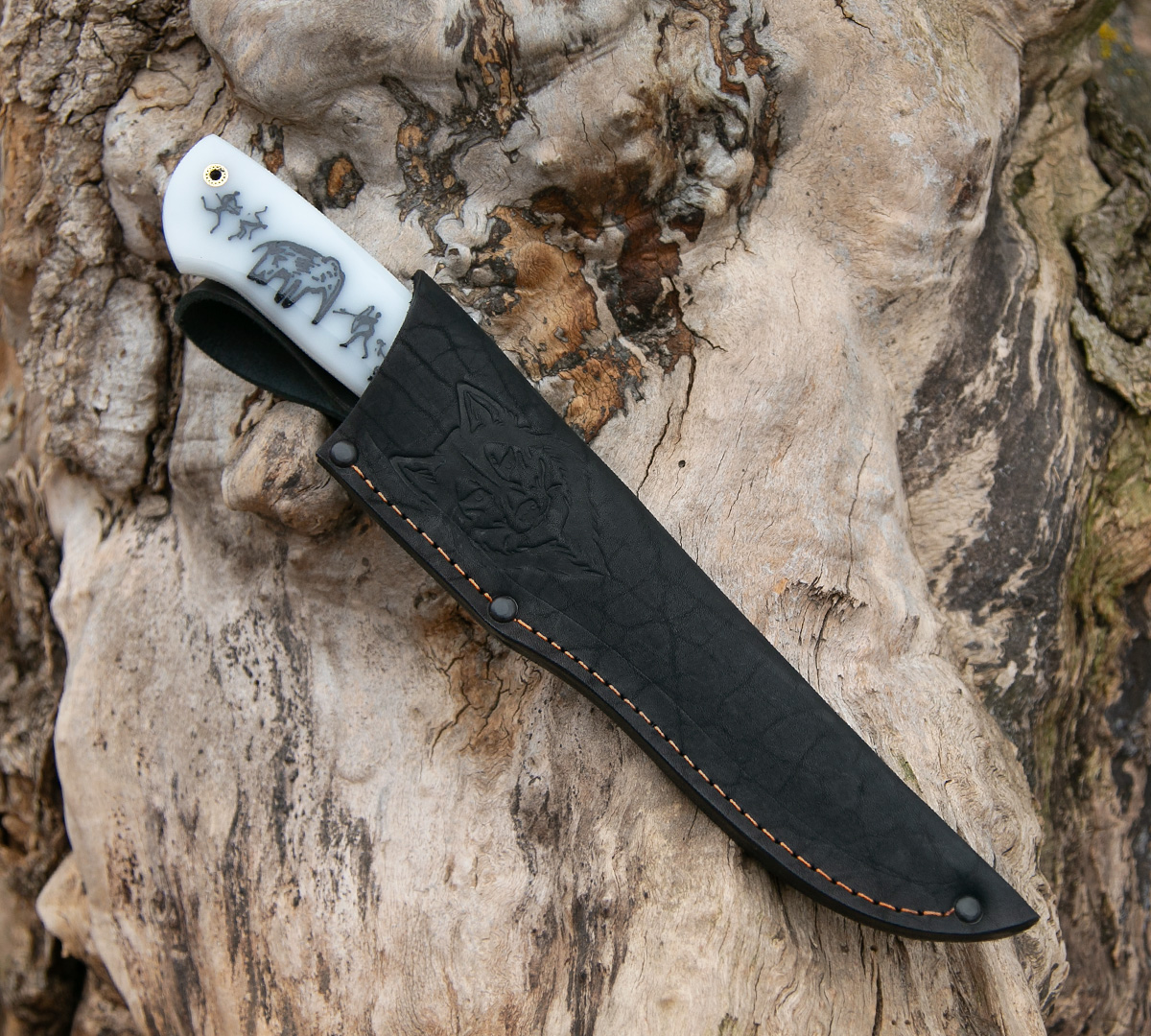 Нож Клыч из стали Elmax в нержавеющих обкладках, рукоять - акрил, чехол в комплекте (возможно изготовить формованные ножны).